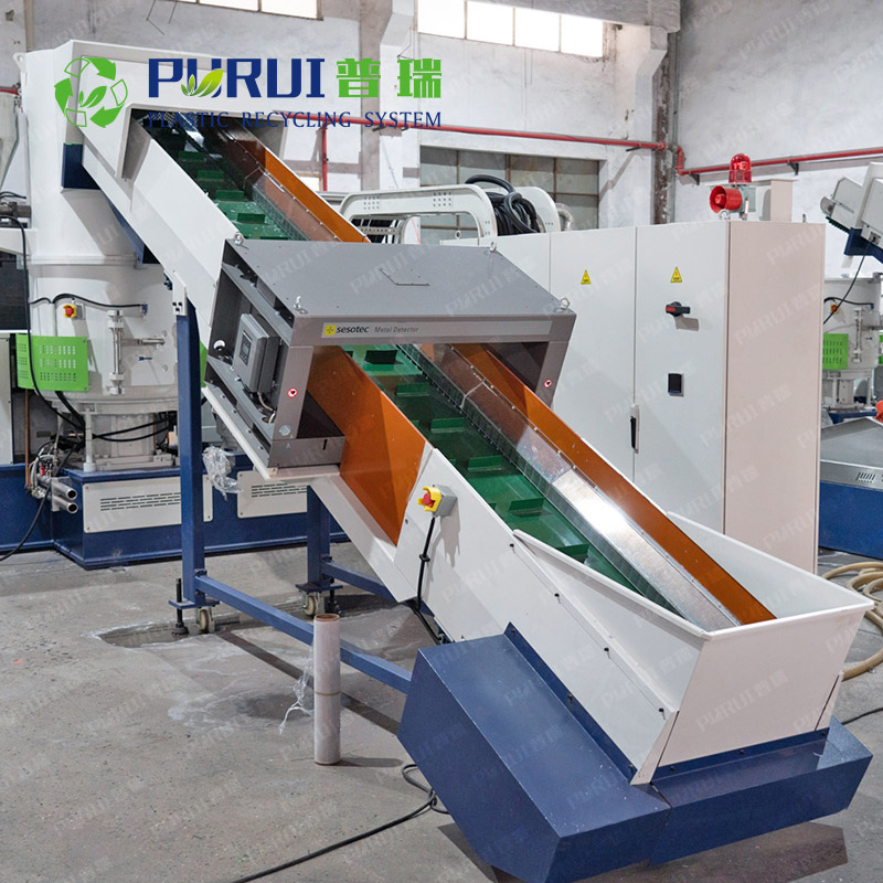 皮帶材料采用PVC,支架為碳鋼,輸送帶上裝有金屬探測器。